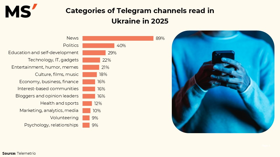 Categories of Telegram channels read in Ukraine in 2025.