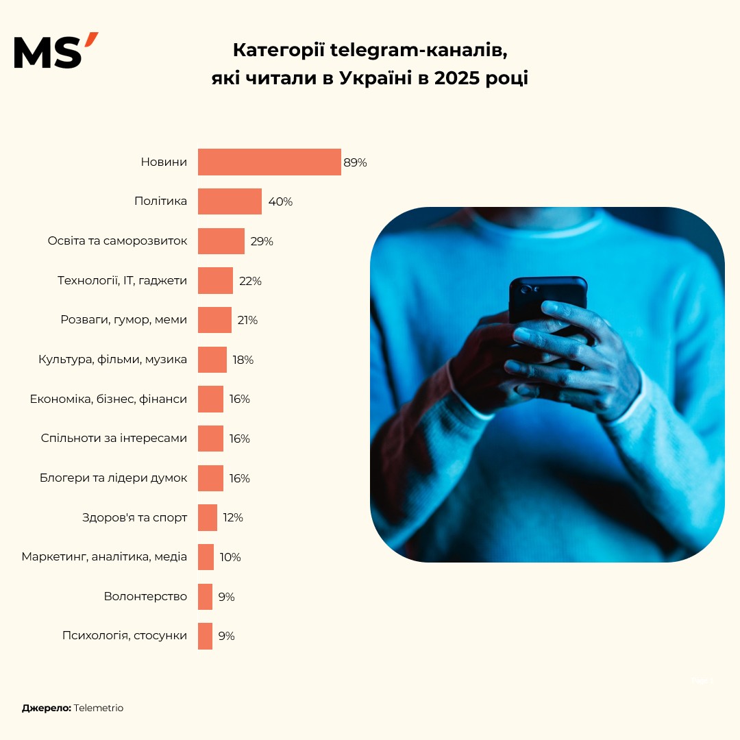 Категорії telegram-каналів, які читали в Україні в 2025 році.