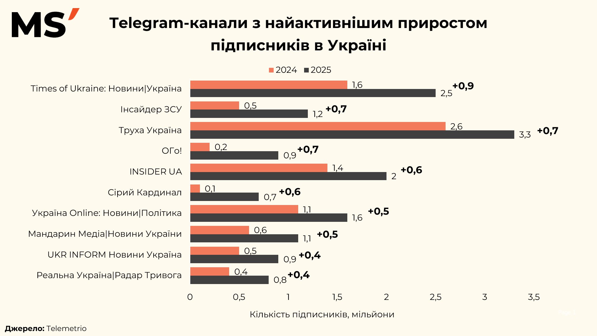 Telegram-канали з найактивнішим приростом підписників в Україні.